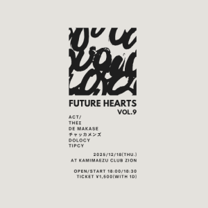 | 2025/12/18/木曜日 | Club Zion presents "Future Hearts Vol.9" OPEN/START 18:00/18:30  ACT/    |
