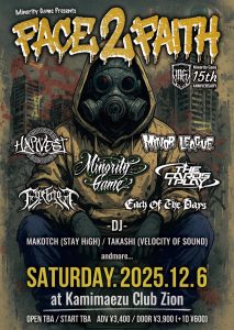 | 2025/12/06/土曜日 | Minority Game presents 『Face 2 Faith』 -Minority Game 15th Anniversary- OPEN TBA / START TBA  ACT/  DJ /