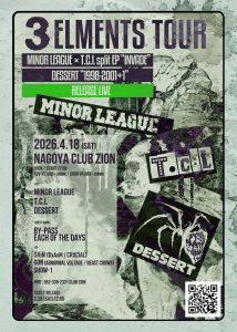 「3 ELMENTS TOUR」 MINOR LEAGUExT.C.L split EP「INVADE」 DESSERT「1998-2001+1」RELEASE LIVE